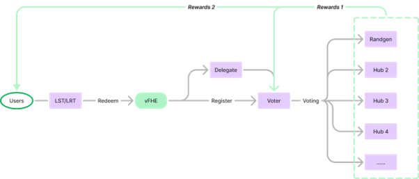 2.    委托赚取奖励:将 $vFHE 委托至 RandGen Hub,参与共识投票并获取额外奖励;